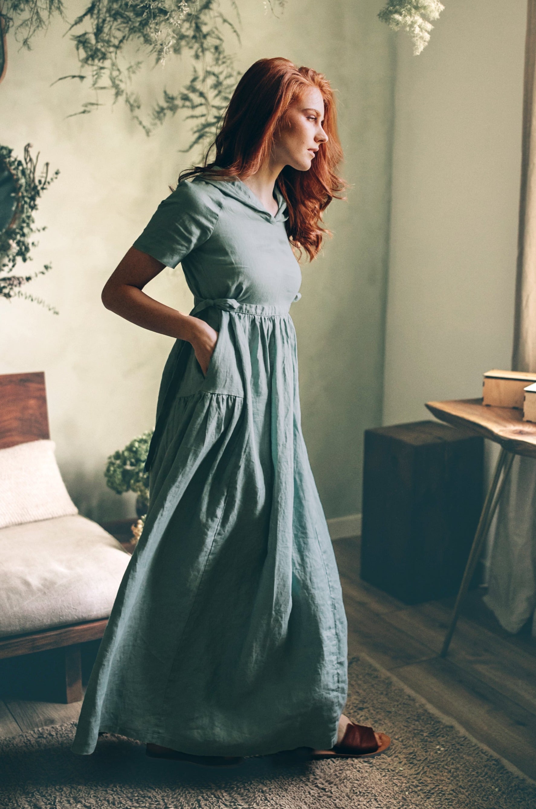 Feminine Hooded Linen Dress