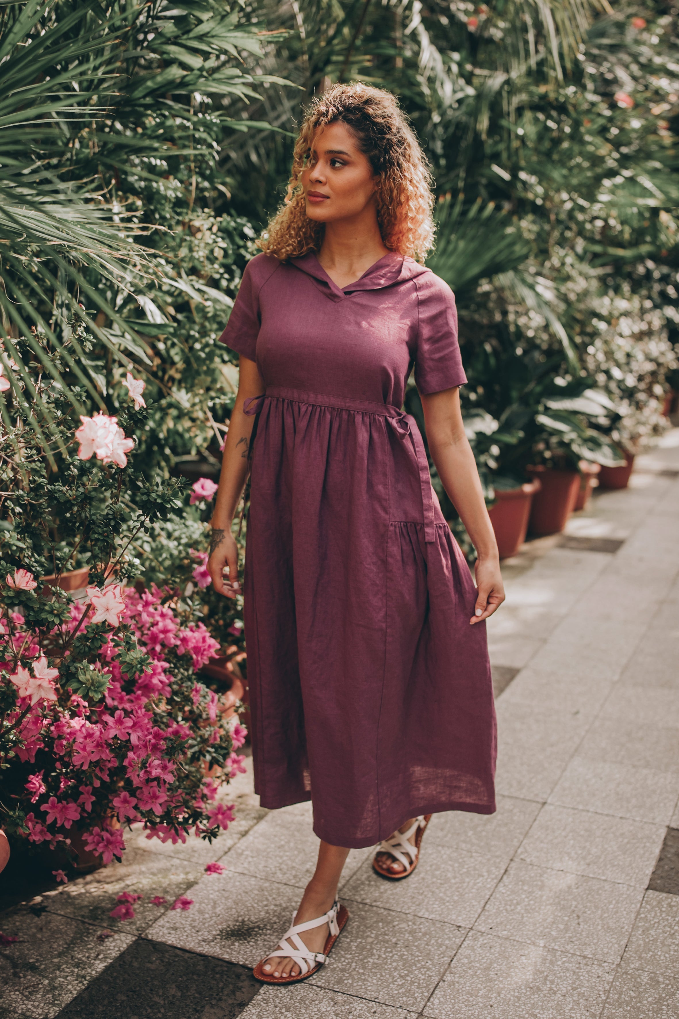 Hooded Linen Midi Dress