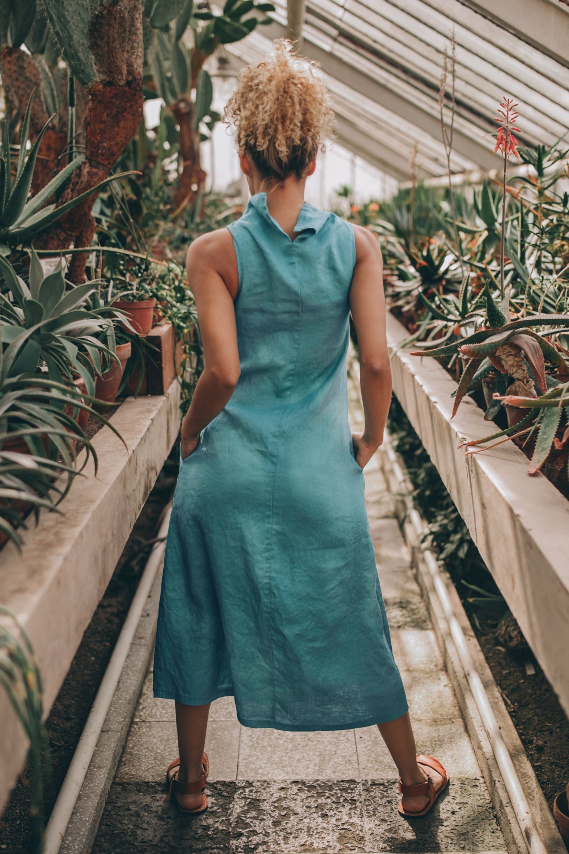 Linen Dress with Cowl Neck in Midi Length