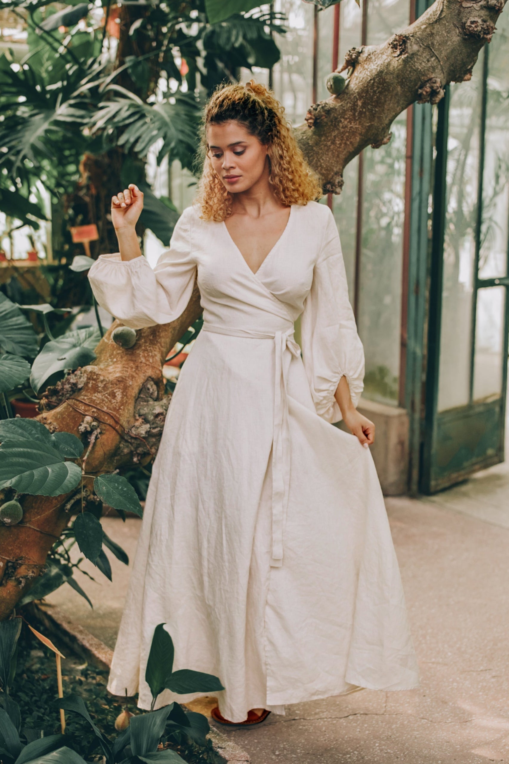 Linen Maxi Dress with Puff Sleeves