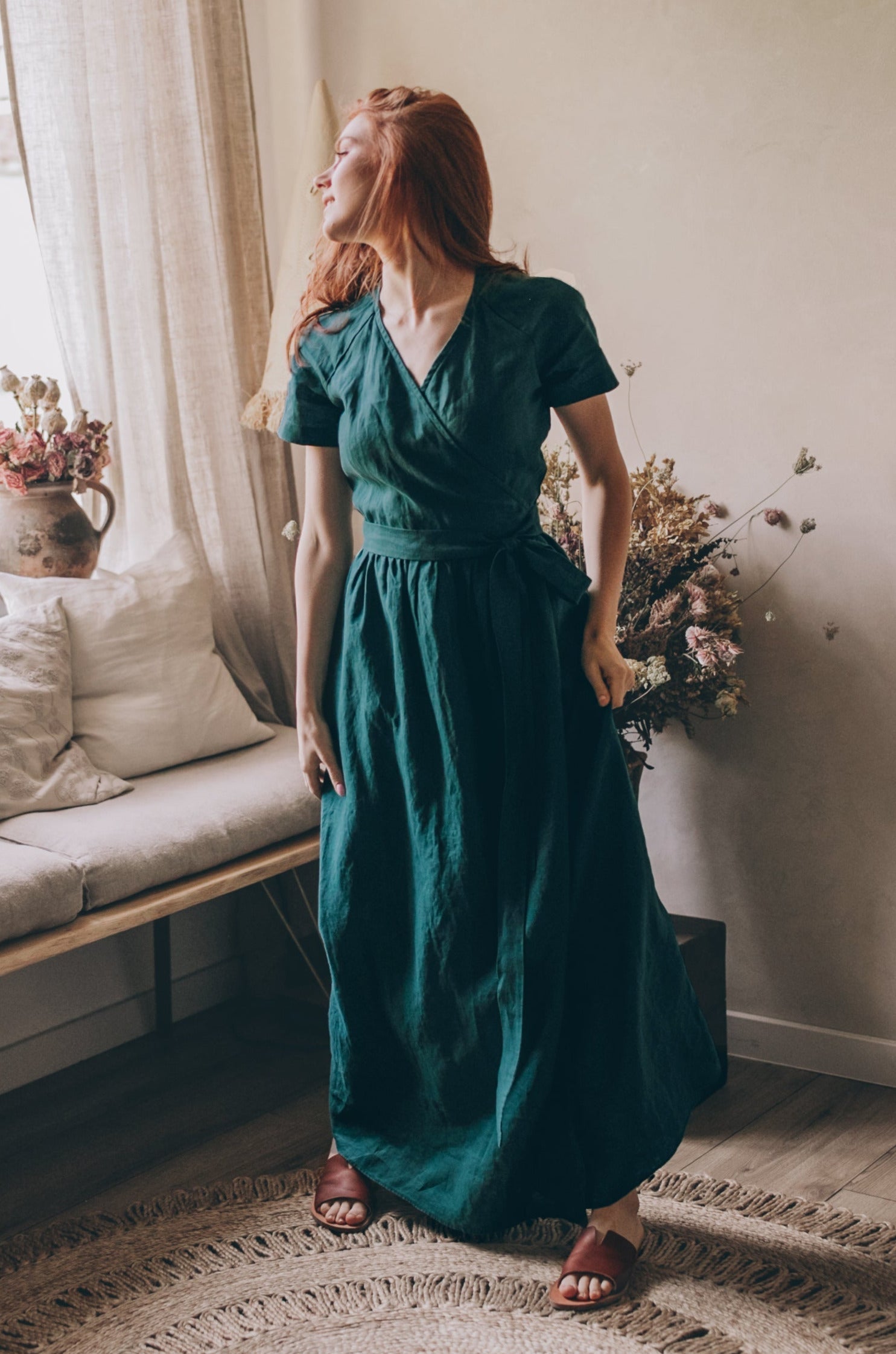 Linen Wrap Maxi Dress