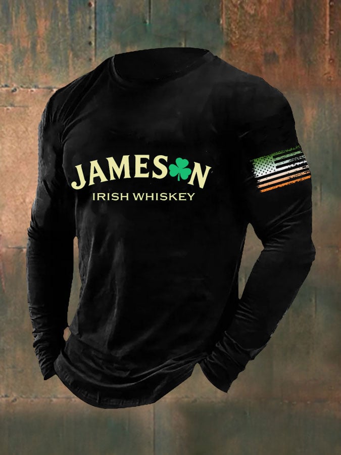 Men's St. Patrick’s Day Jameson Irish Whiskey Print Casual Long Sleeve T-Shirt