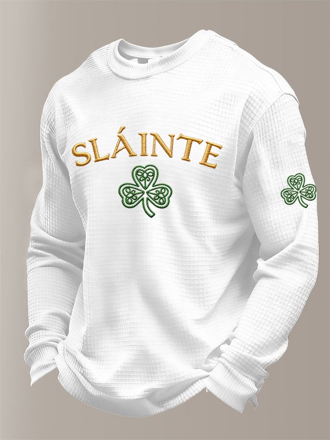 Men'S St Patrick's Day Print Waffle Fabric Long Sleeve T-Shirt