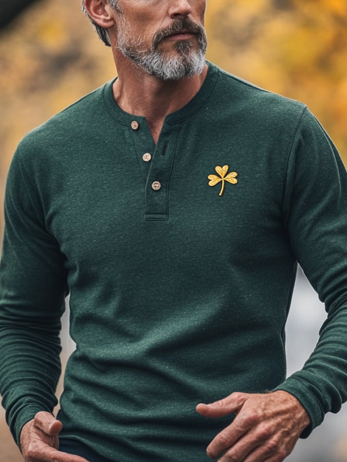 Men's Vintage St. Patrick's Day Henley Long Sleeve Top