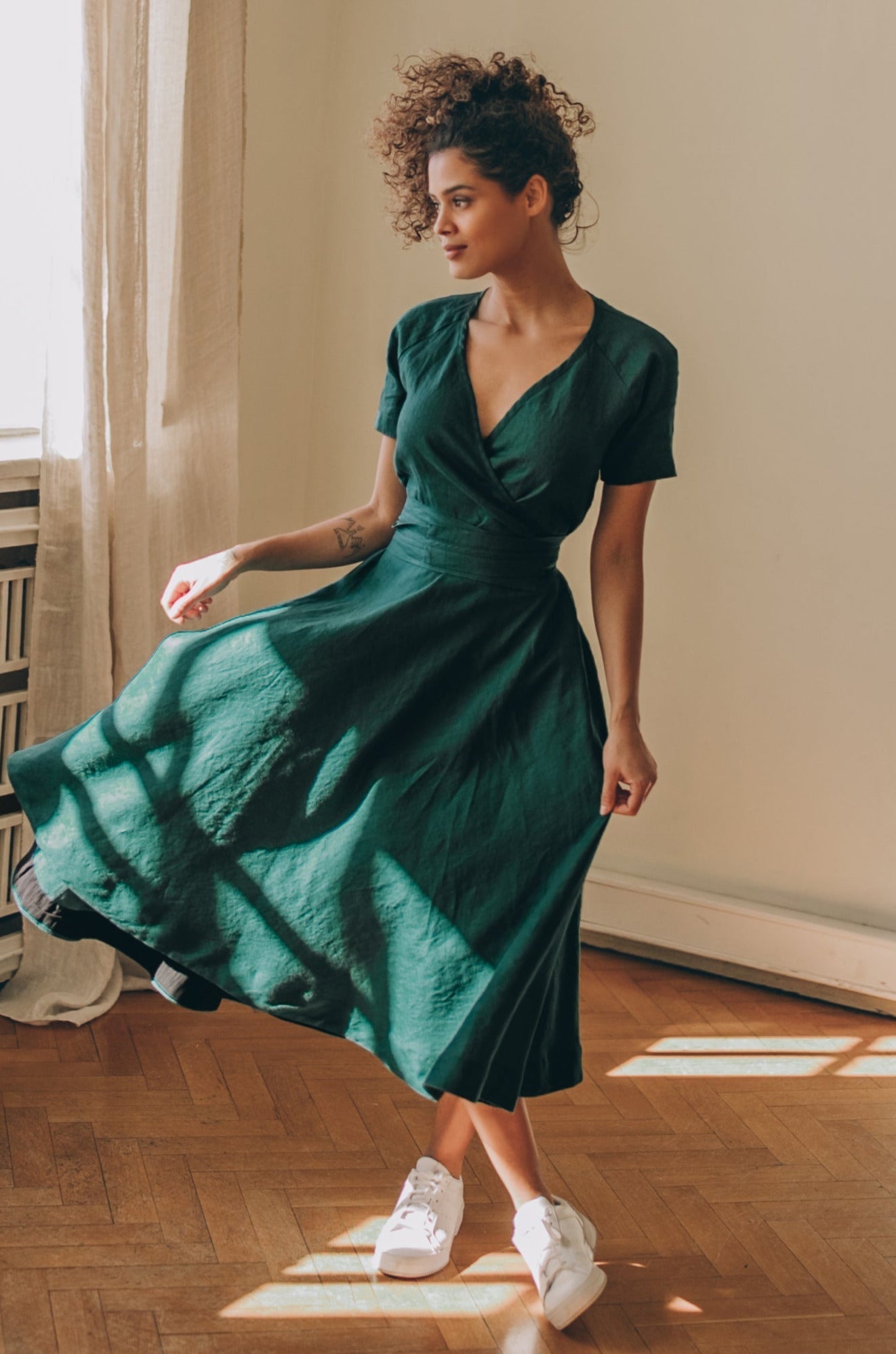 Midi Length Linen Wrap Dress