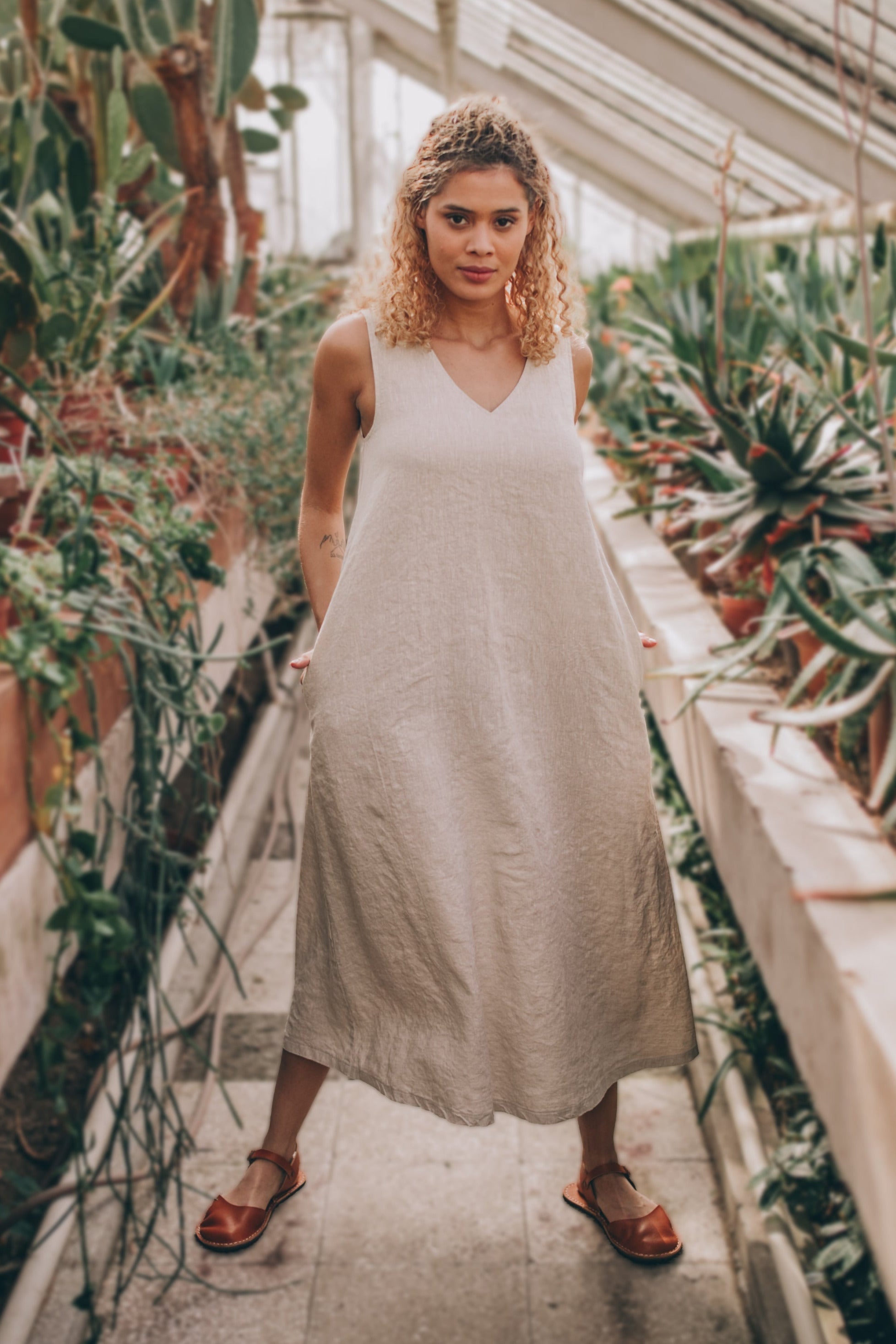 Minimalist Linen Dress in Midi Length