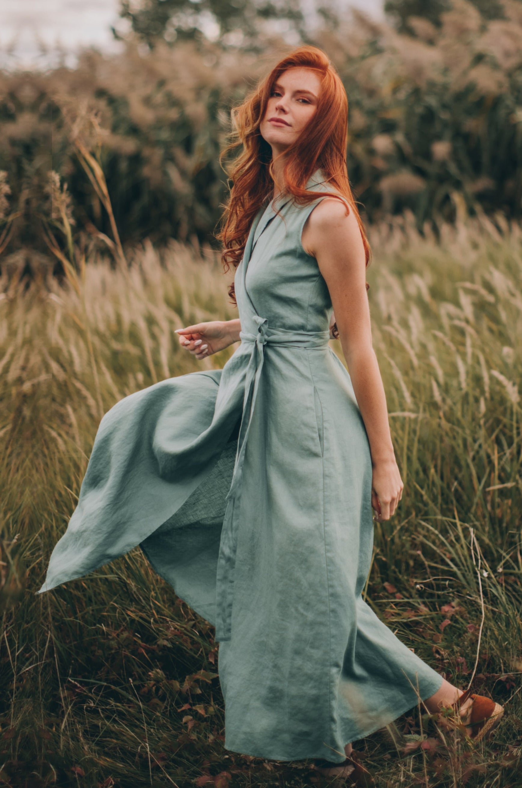 Sleeveless Linen Wrap Dress