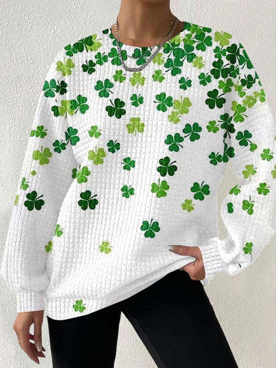 St. Patrick's Day Printed Waffle Crew Neck Pullover