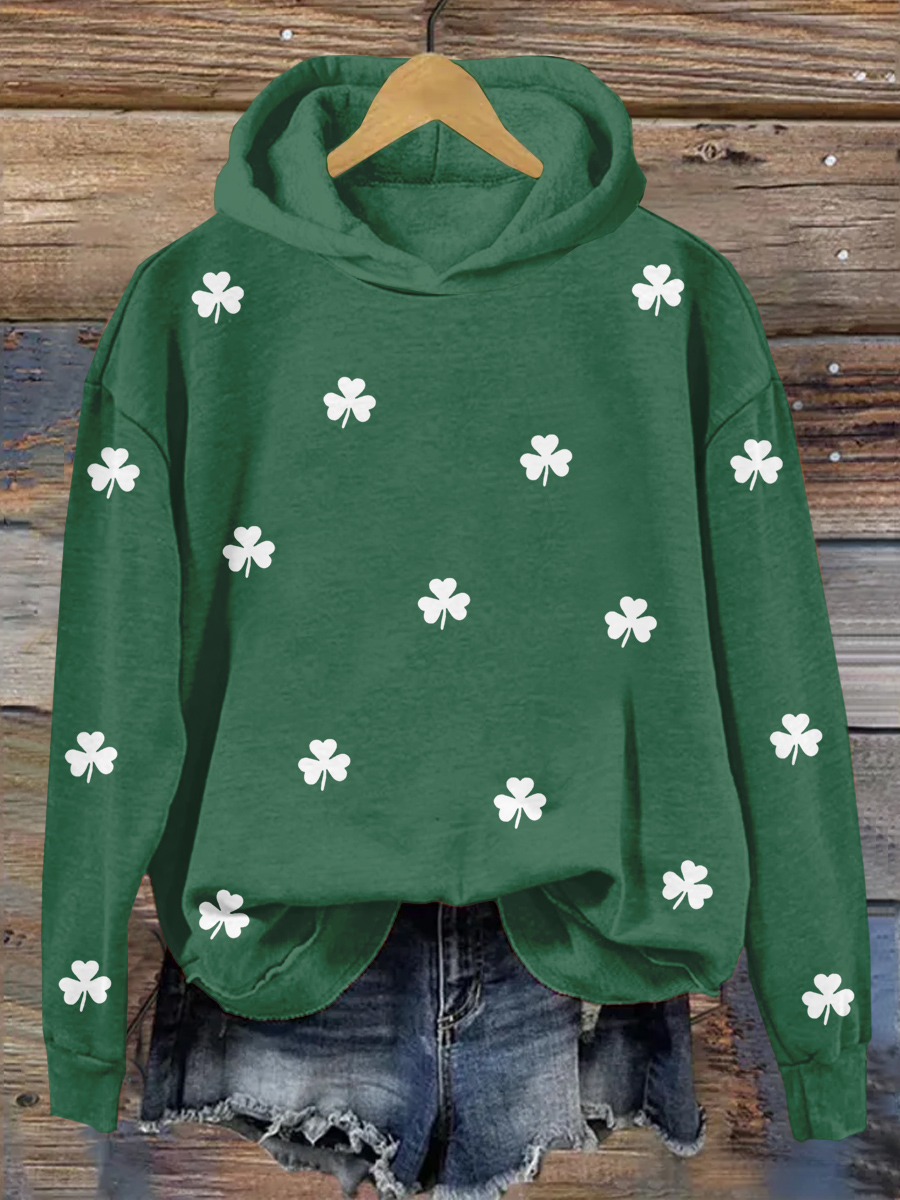 St. Patrick's Day Shamrock Print Hooded Sweatshirt