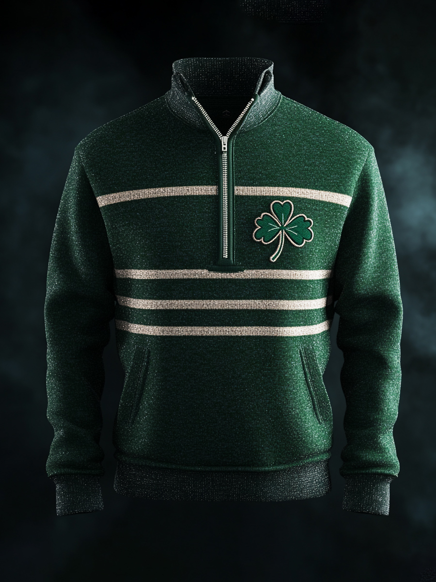 St. Patrick's Day Striped Trefoil Print Half-Zip Sweatshirt