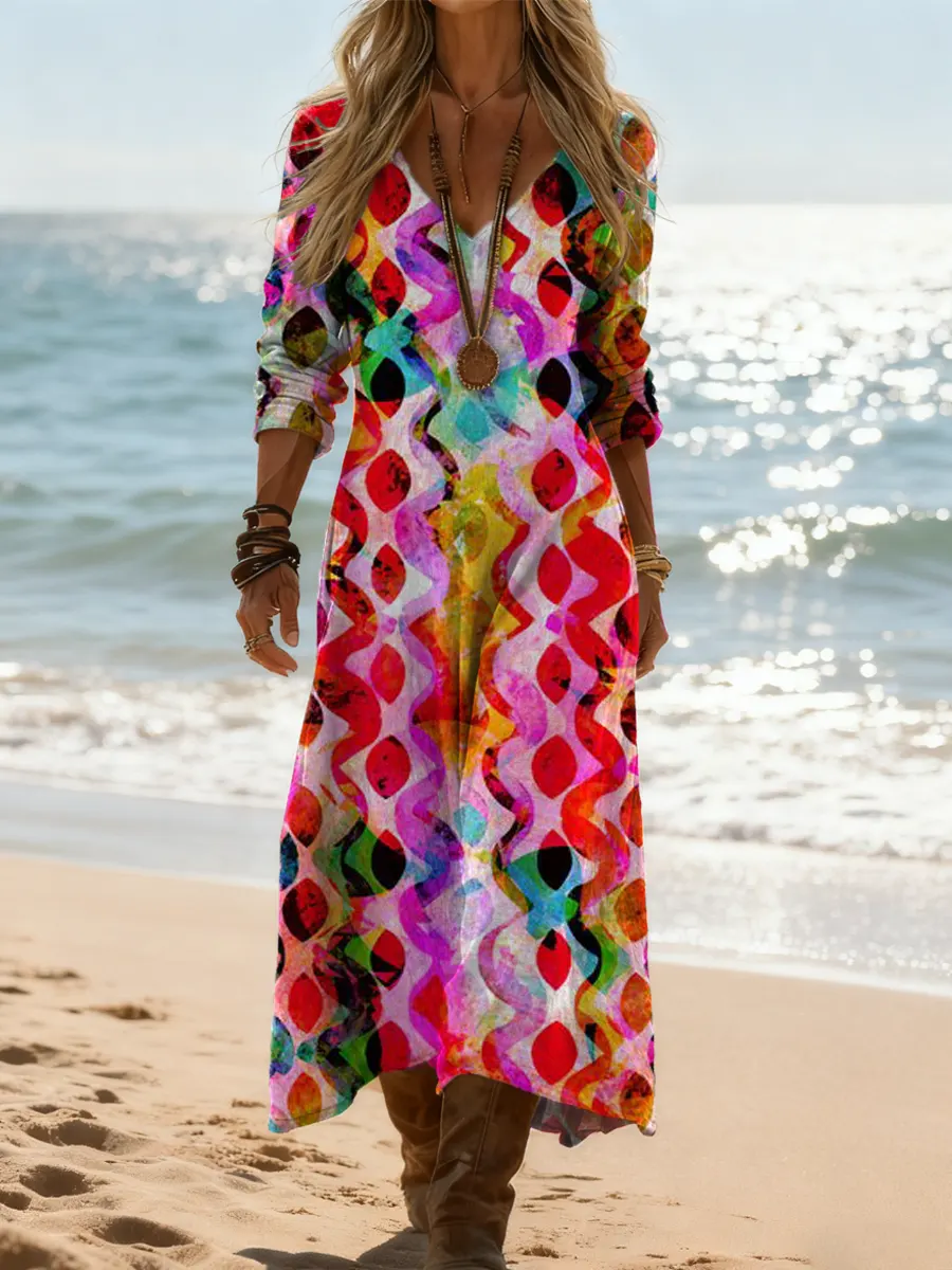 Women's Abstract Pattern Art Print Casual Cotton Dress