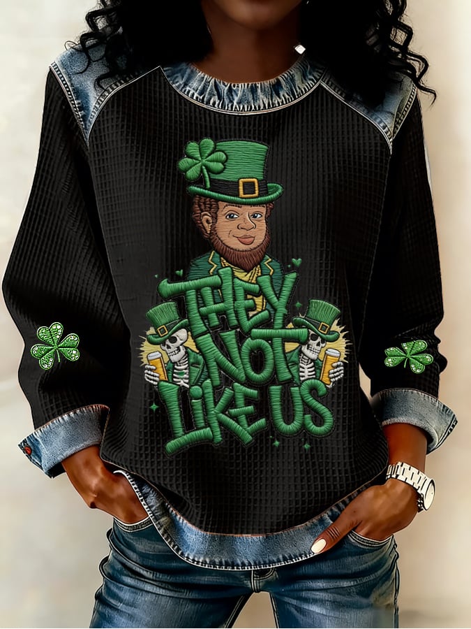 Women's African-American St. Patrick's Day denim-print top