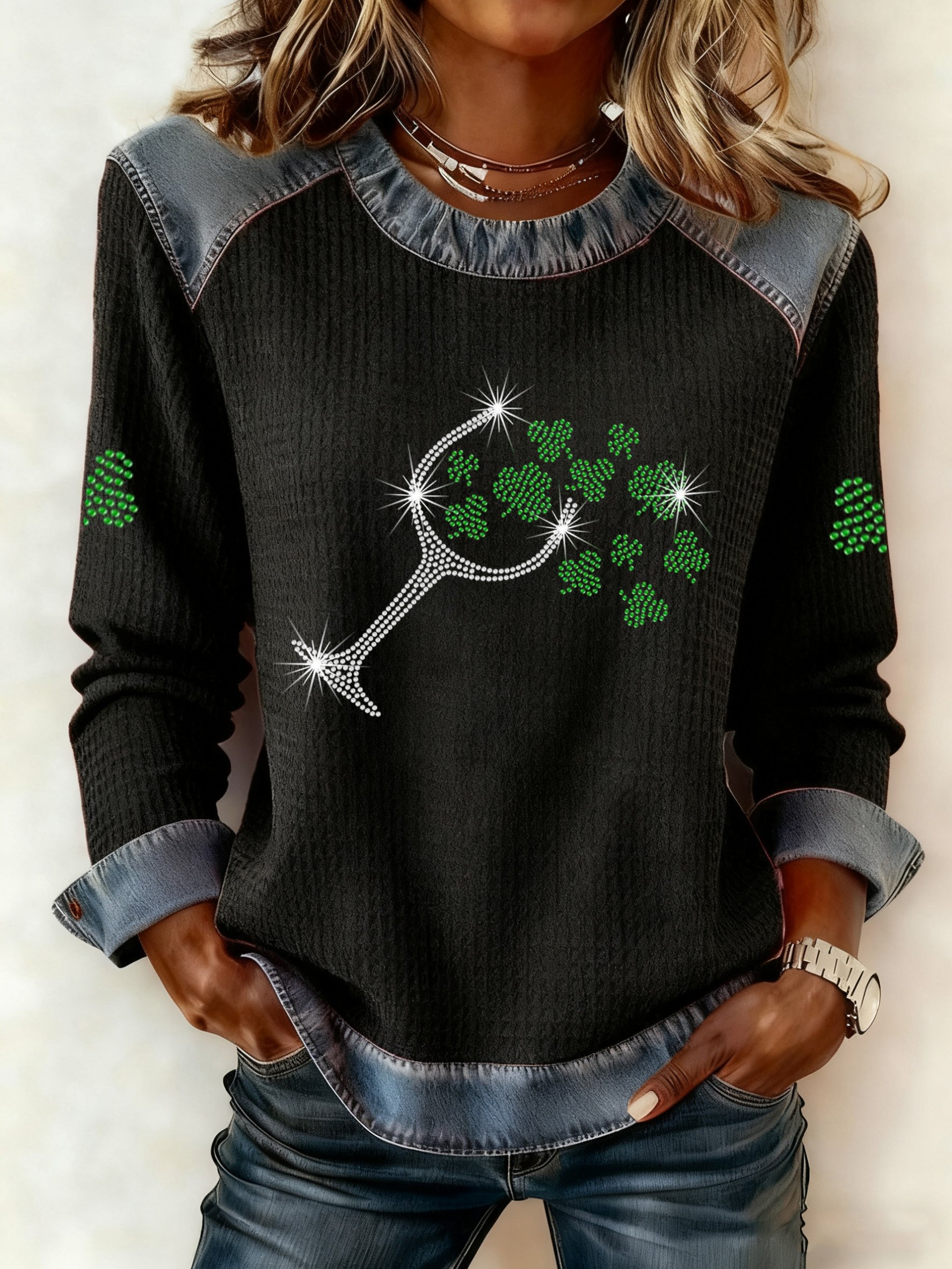 Women's Autumn/Winter St. Patrick's Day Faux Denim Print Top