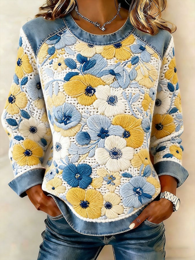 Women's Casual Floral Print Long-Sleeve Sweatshirt