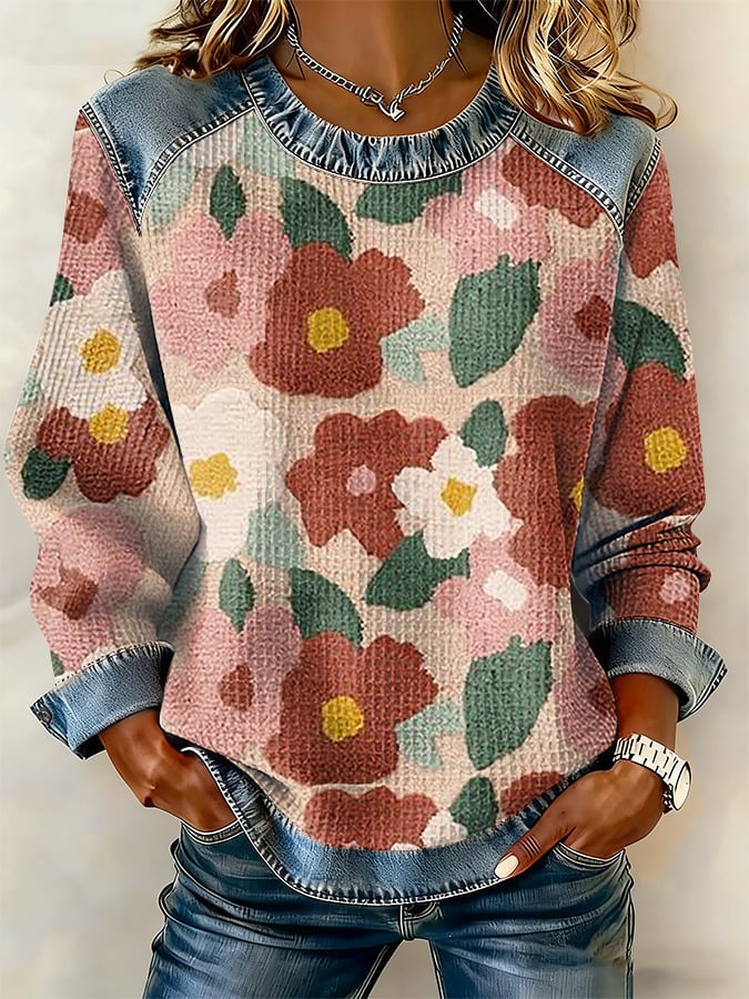 Women's Casual Floral Print Long-Sleeve Sweatshirt