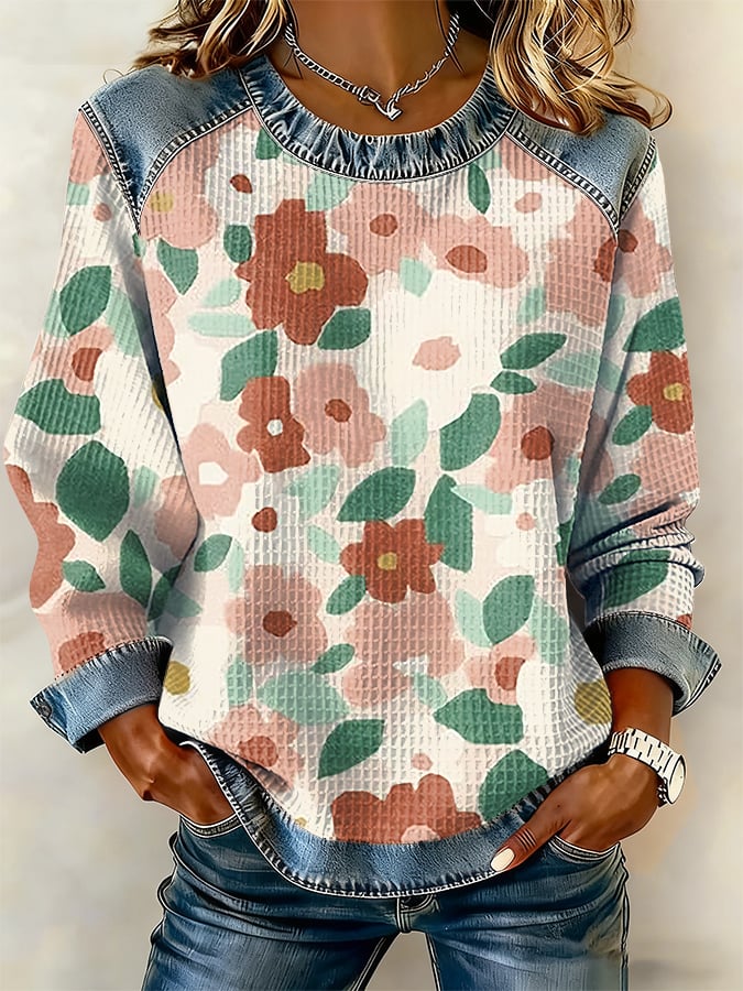 Women's Casual Floral Print Long-Sleeve Sweatshirt