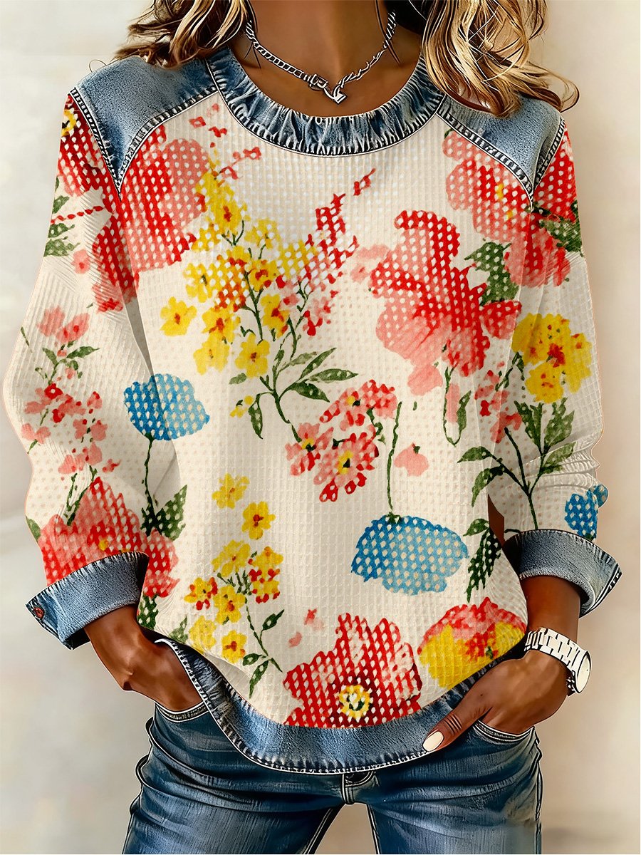 Women's Casual Floral Print Long-Sleeve Sweatshirt