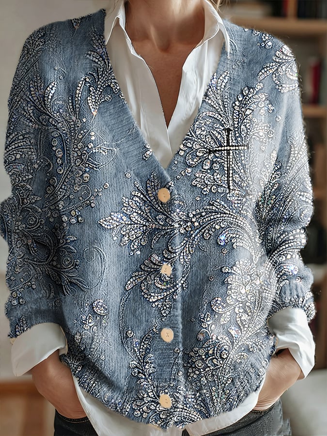 Women's Floral Cross Print Casual Cardigan
