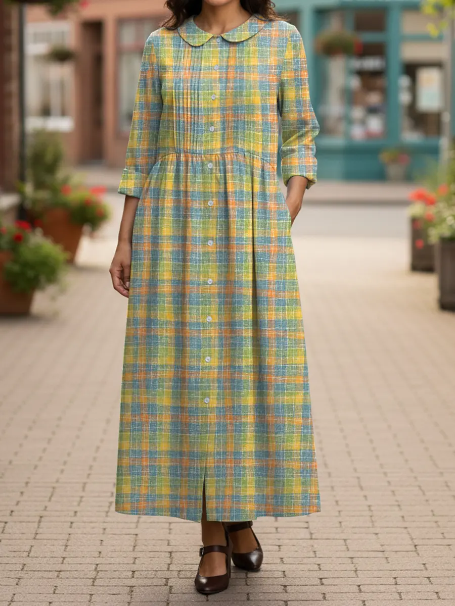 Women's Retro Stripes Long-sleeved Cotton And Linen Dress