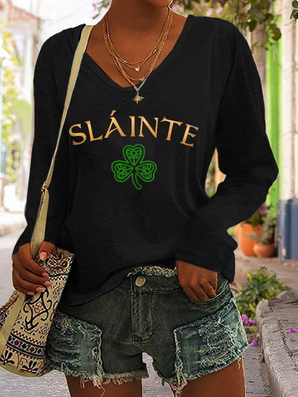 Women's Slainte St. Patrick's Day Print V-Neck Top