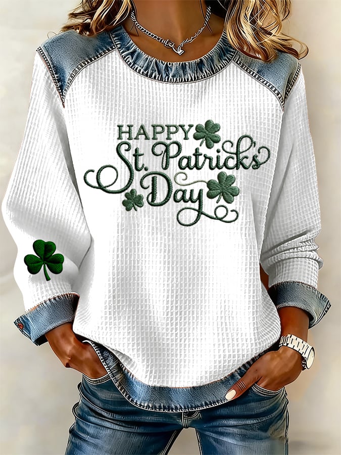 Women's St. Patrick's Day Clover Print Long-Sleeve Sweatshirt