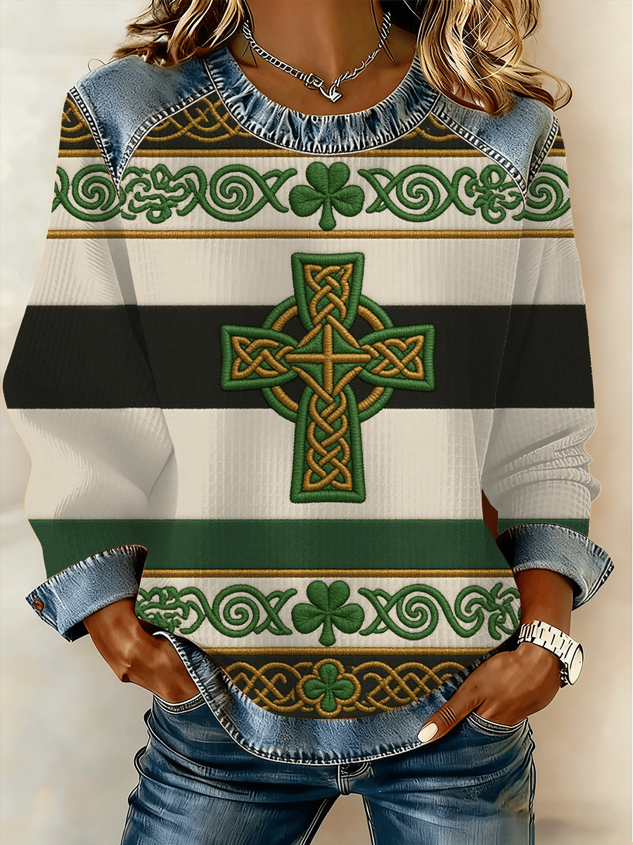 Women's St. Patrick's Day Print Waffle Sweatshirt
