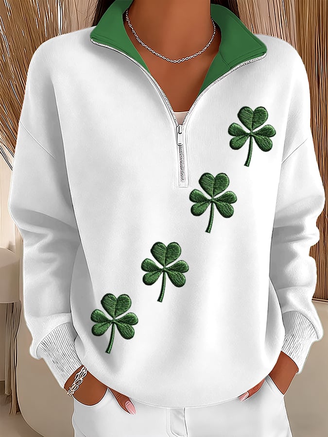 Women's St. Patrick's Day Printed Zip-Up Stand-Collar Sweatshirt