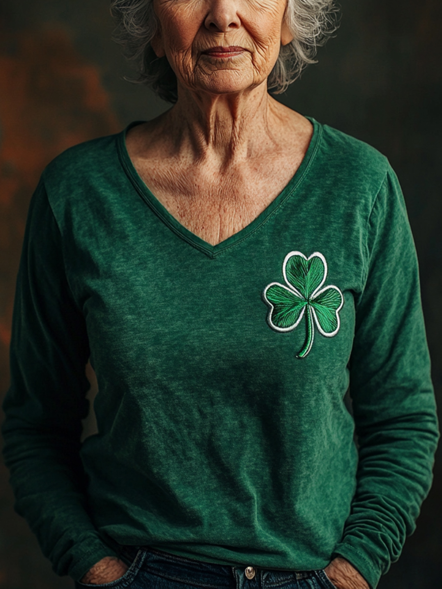 Women's St. Patrick's Day Shamrock Print Long Sleeve T-Shirt