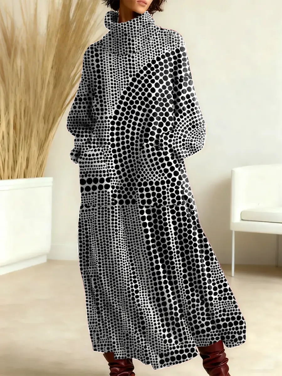 Women's Vintage Abstract Geometric Pattern Art Print Casual Cotton Knitted Dress