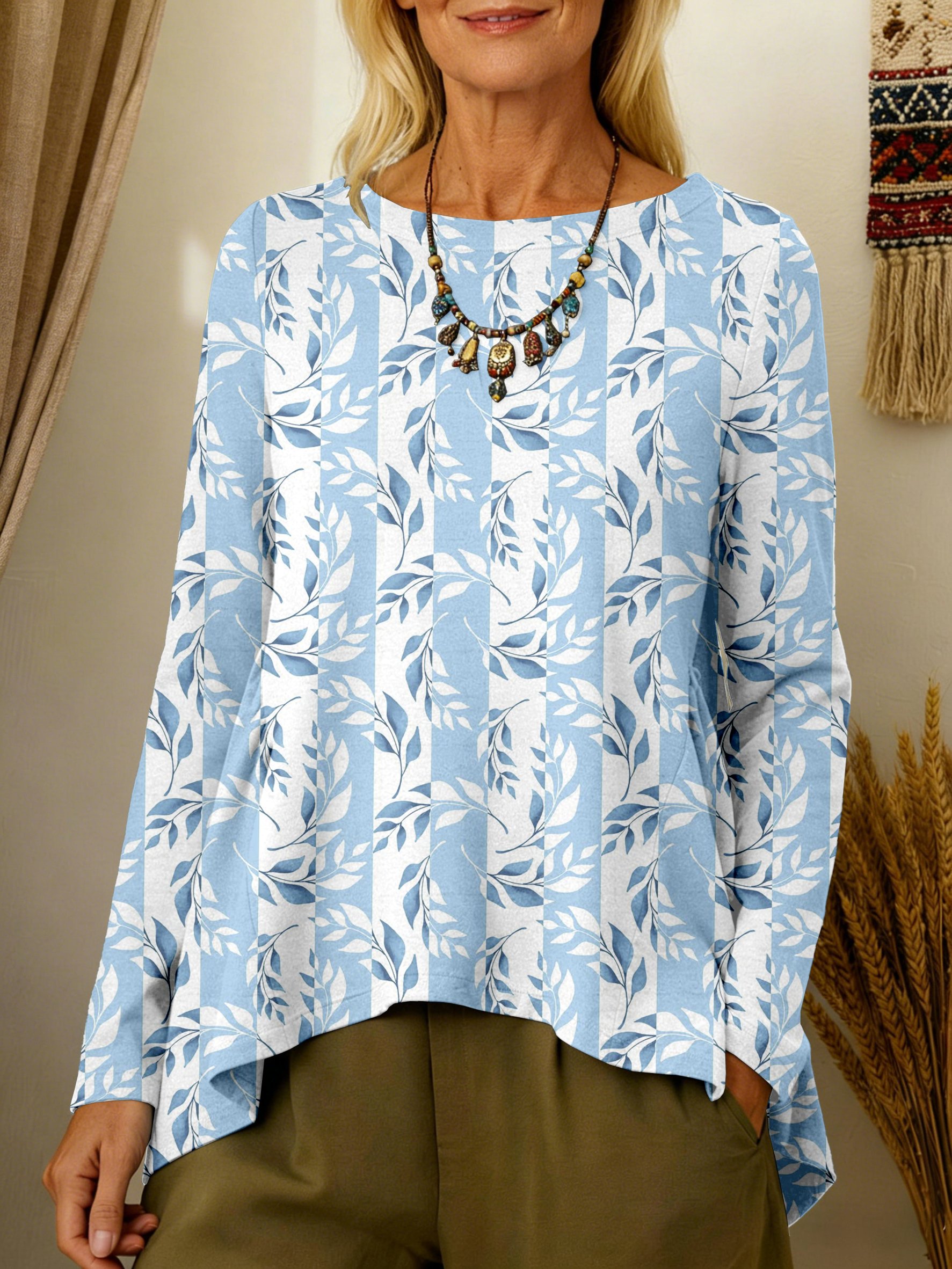 Women's Vintage Floral Art Print Casual Long-sleeved T-shirt