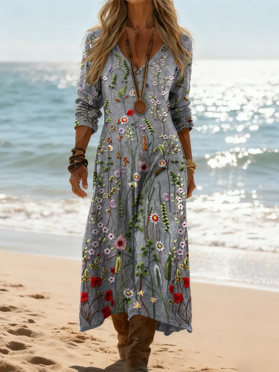 Women's Vintage Floral Pattern Art Print Casual Cotton Dress